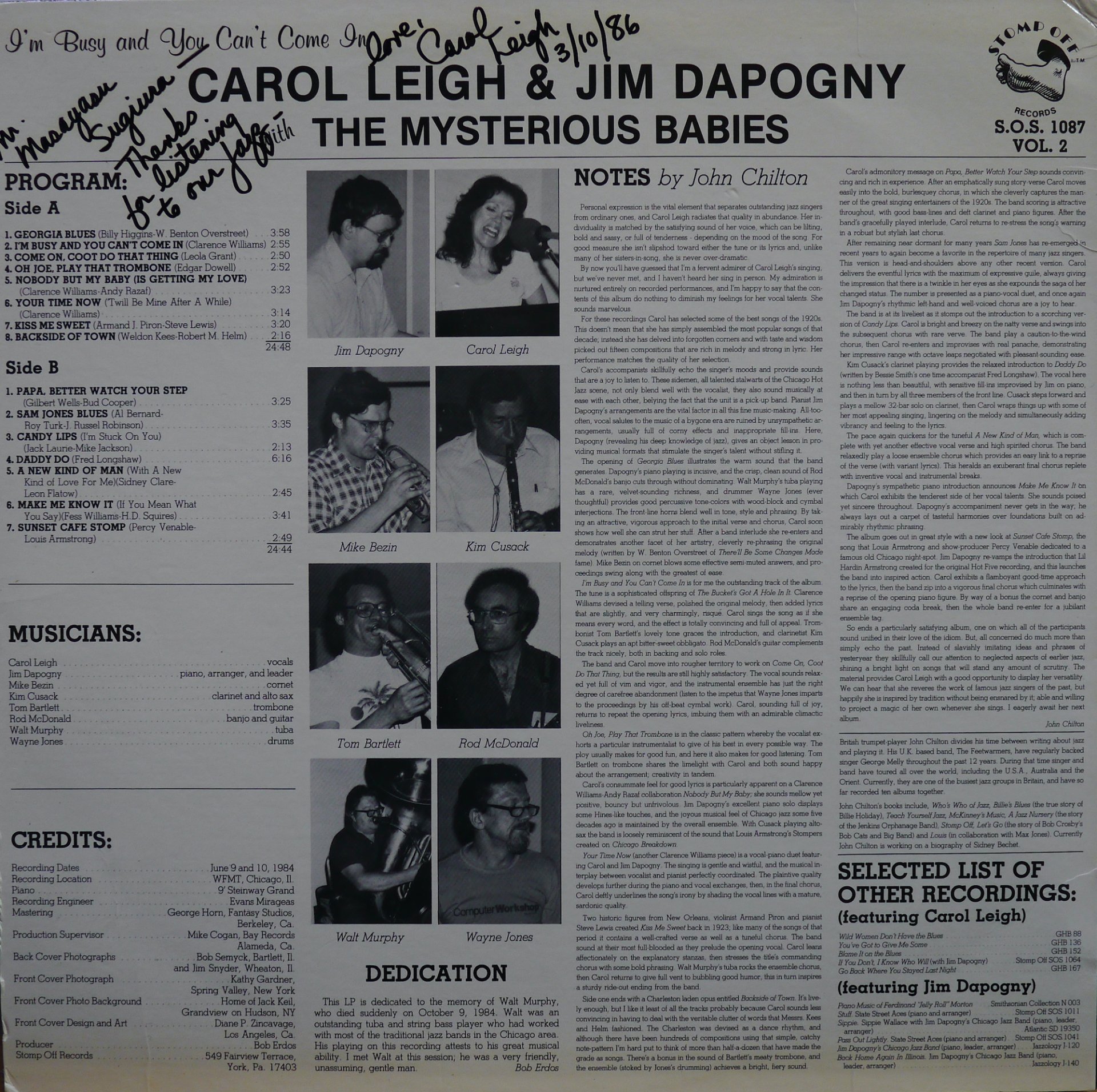 Carol Leigh & Jim Dapogny* With The Mysterious Babies – I'm Busy and You Can't Come In
